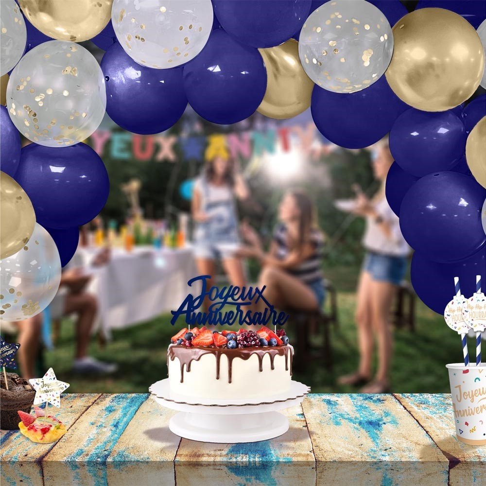 Notre kit arche 40 ballons à confettis au thème marin gold doré saura animer vos soirées !Très facile à installer, vous pourrez l'installer où vous voudrez pour une décoration unique. Un accessoire original qui laissera un souvenir mémorable à vos invités. Le kit d'arche à ballons présentent : 6 ballons dorés, 24 ballons bleus et 10 ballons transparents à confettis dorés , 3m de ruban accroche ballons. Ils sont facilement liables entre eux par un ruban accroche ballon compris dans le kit.