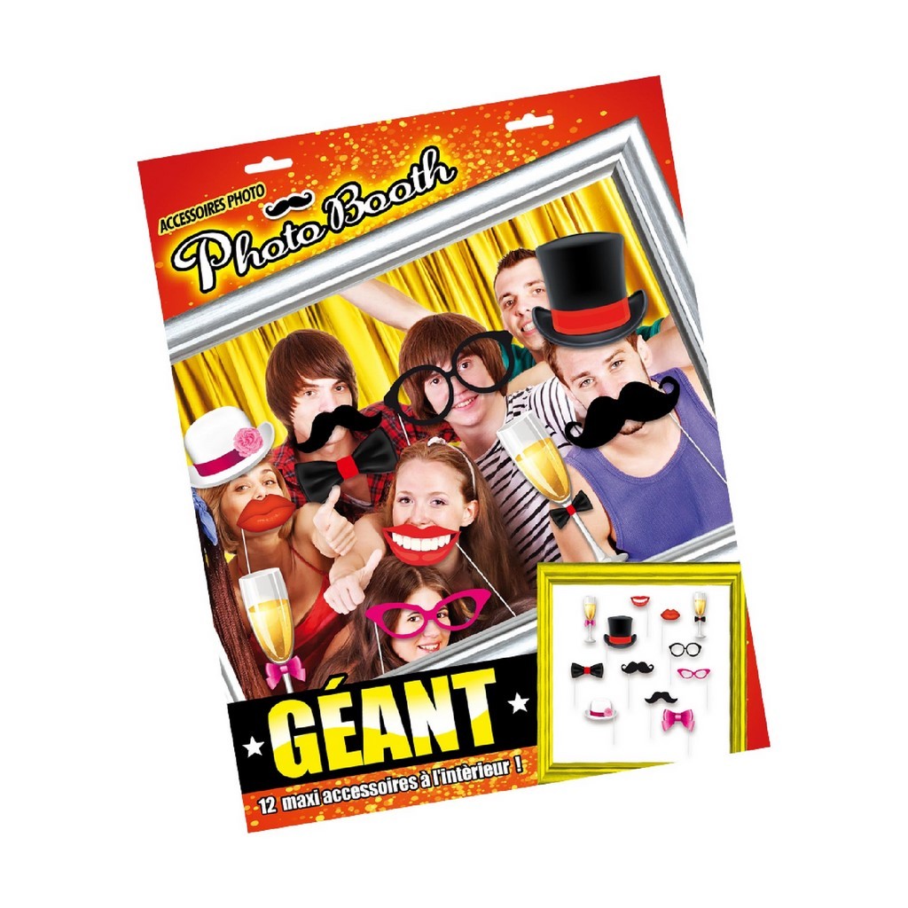PHOTOBOOTH GEANT 12 accessoires CHIC.Pour un merveilleux moment de partage entre amis ouen famille, voici le photobooth géant chic.Le kit est composé de 12 accessoires géants pourdes photos mémorables.