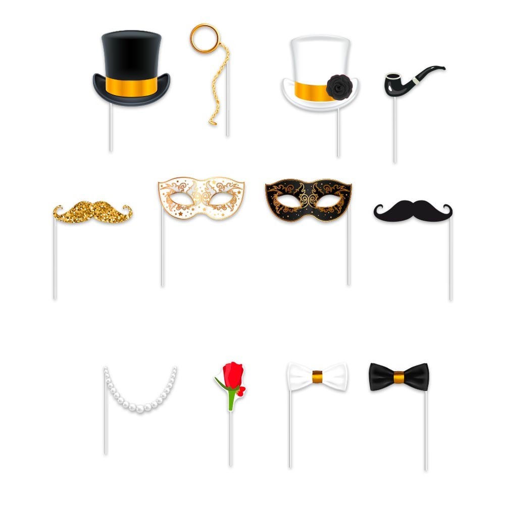 PHOTOBOOTH 12 ACCESSOIRES CHIC Pour un merveilleux moment de partage entre amis ou en famille, voici le photobooth chic. Le kit est composé de 12 accessoires pour des photos mémorables.