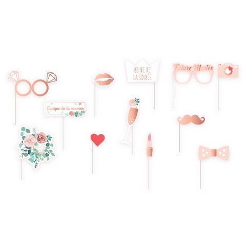 PHOTOBOOTH 12 accessoires.Vous souhaitez des lunettes fun, un joli bouquet ou bien une moustache rigolote pour vous prendre quelques clichés ? Ce kit photobooth répondra parfaitement à vos attentes pour réaliser vos plus belles photos.