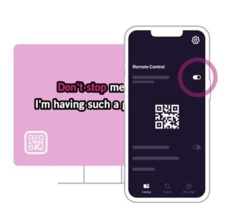 - Invitez tous vos amis à se connecter via leur smartphone, ils pourront ensuite ajouter leur chanson à la file d'attente et explorer le catalogue ! Pour ceci il suffit de scanner le QR code affiché sur la borne !